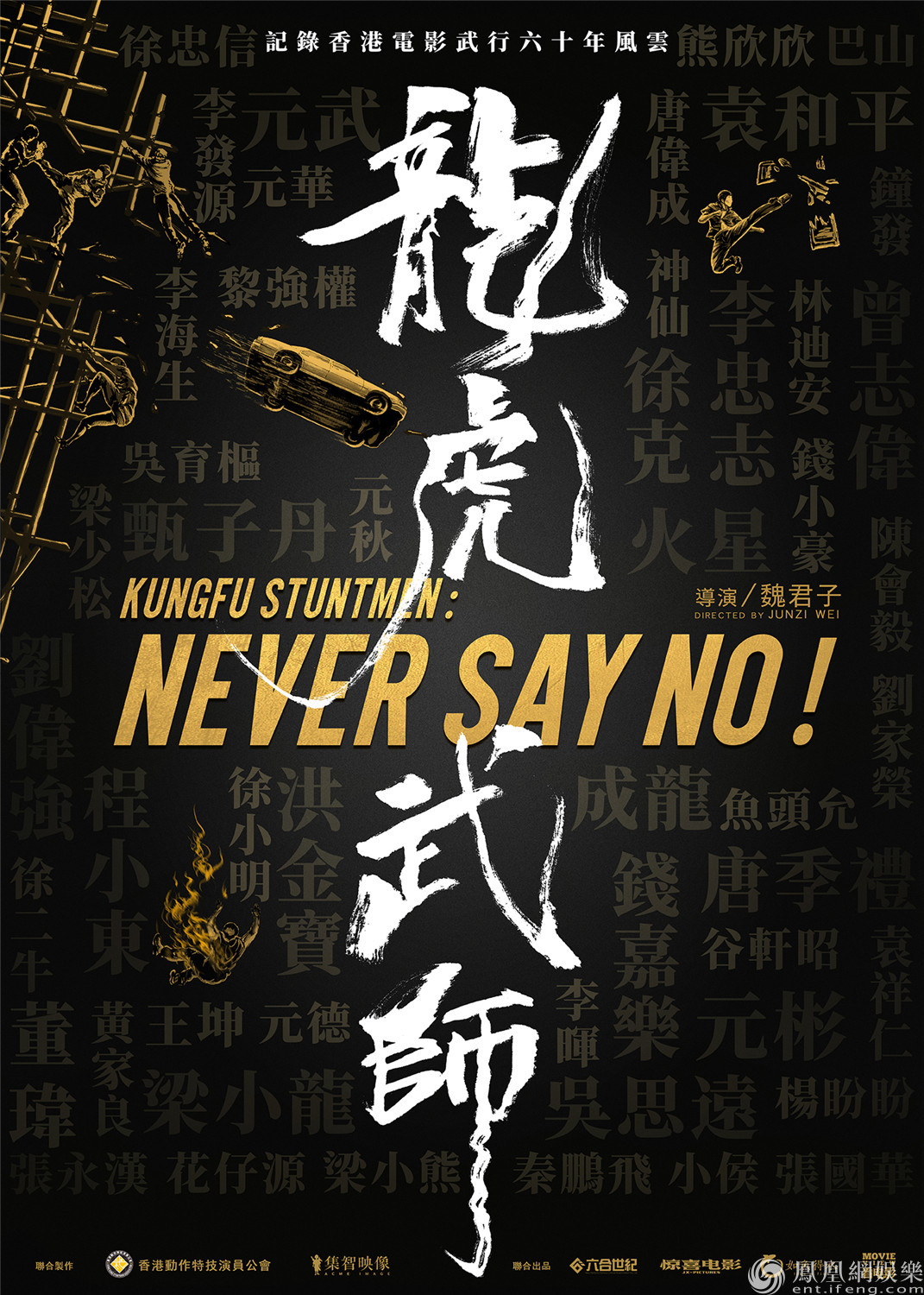 無獨有偶,就在金像獎開獎之前,一部名為《龍虎武師》的紀錄片已經進入后期制作階段,近日,影片首發海報,海報上圍繞著“Never Say No(永不說不)”這句話的,是龍虎武師們搏命上陣展現武打、跳樓、飛車、著火等驚險絕技的身影。而“龍虎武師”四個大字則由劉德華親自題寫。