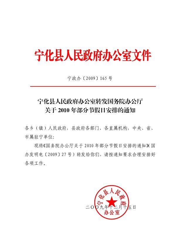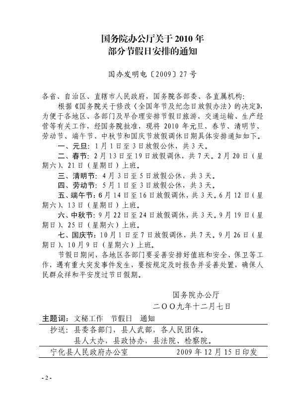 關于2010年部分節假日安排的通知