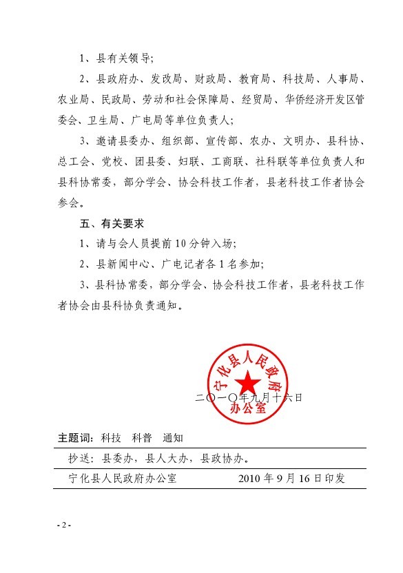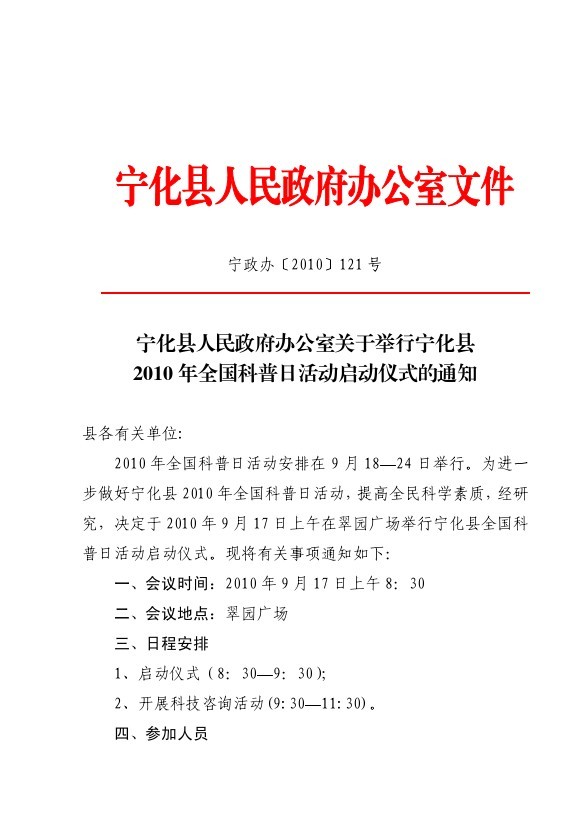 關于舉行寧化縣2010年全國科普日活動啟動儀式的通知