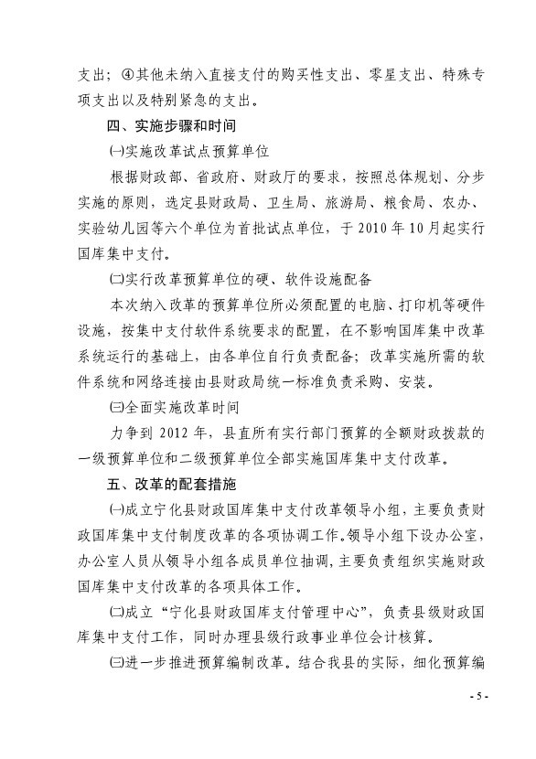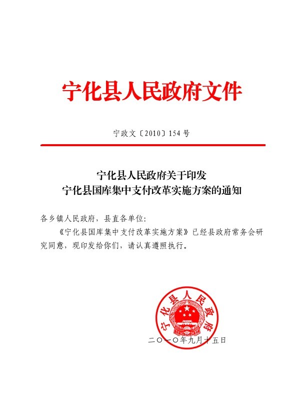 關于印發寧化縣國庫集中支付改革實施方案的通知