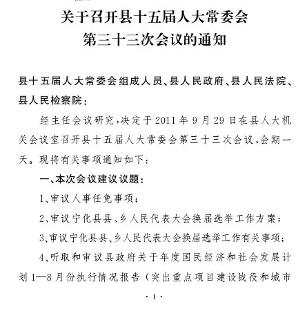 關于召開縣第十五屆人大常委會第三十三次會議的通知