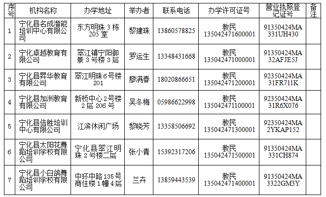 寧化縣民辦校外培訓機構“白名單”公告