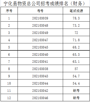 寧化縣物資總公司關于2021年公開招聘企業(yè)工作人員筆試成績公示