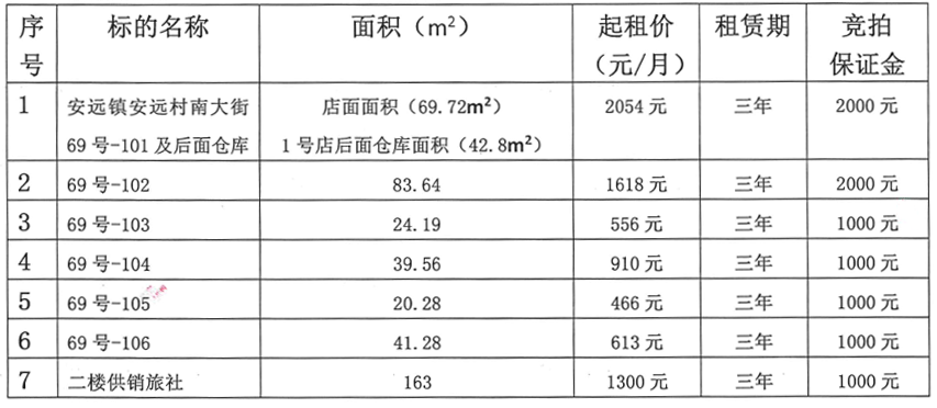寧化縣安遠供銷合作社店面租賃權拍租公告