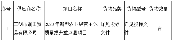 2023年新型農(nóng)業(yè)經(jīng)營主體質(zhì)量提升重點(diǎn)縣項(xiàng)目 成交公告