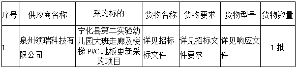 寧化縣第二實驗幼兒園大班走廊及樓梯PVC地板更新采購項目 成交公告