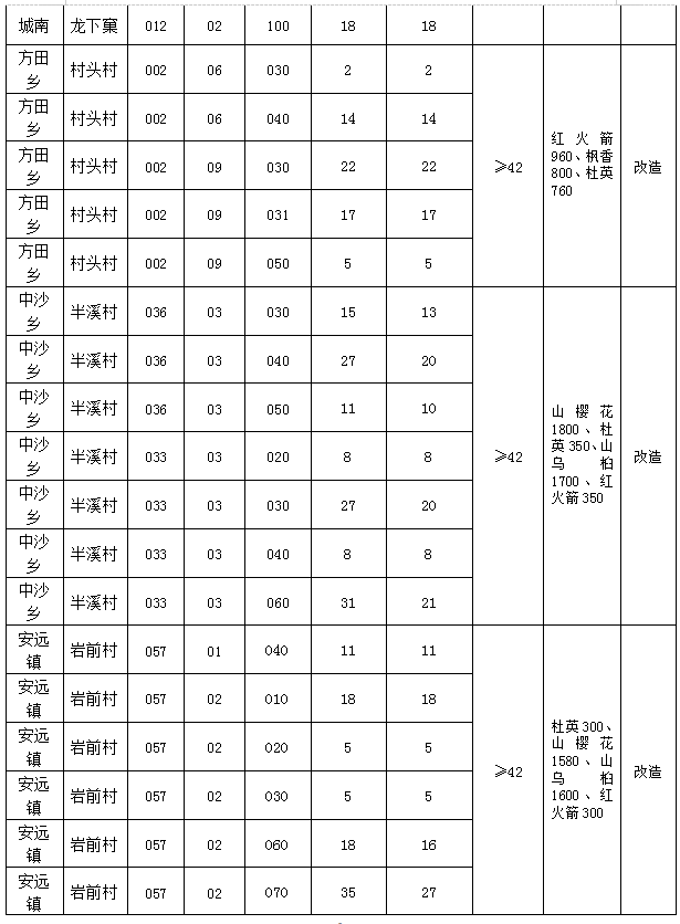 2.1建設(shè)地點(diǎn):寧化縣濟(jì)村鄉(xiāng)新田村和長坊村226畝,城南鎮(zhèn)龍下窠村和青塘村90畝、方田鄉(xiāng)村頭村60畝、中沙鄉(xiāng)半溪村100畝、安遠(yuǎn)鎮(zhèn)巖前村90畝,合計(jì)面積566畝,詳見表一。