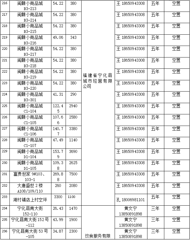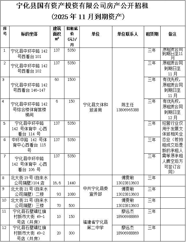 寧化縣國有資產(chǎn)投資有限公司房產(chǎn)(2025年11月到期資產(chǎn))公開招租公告