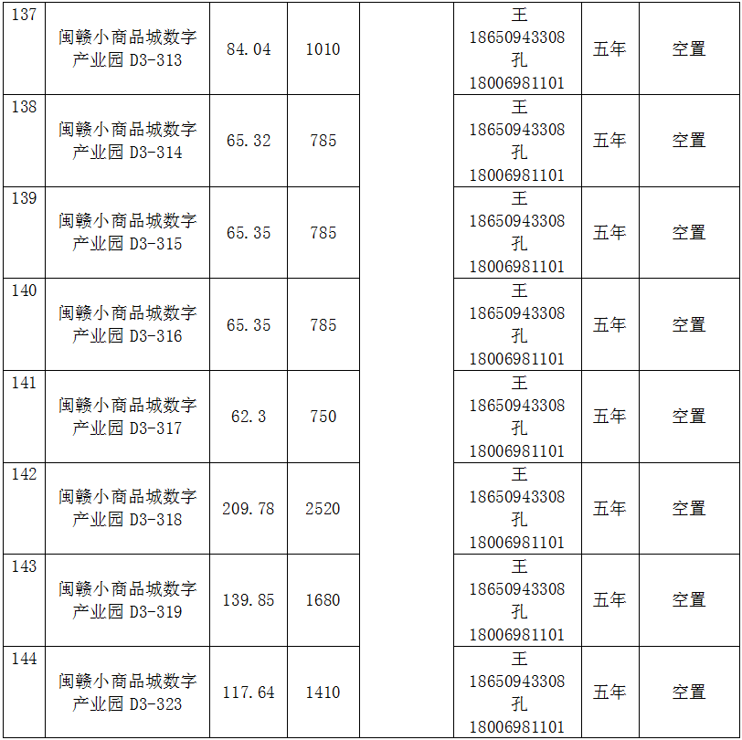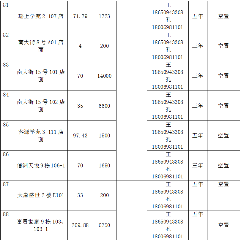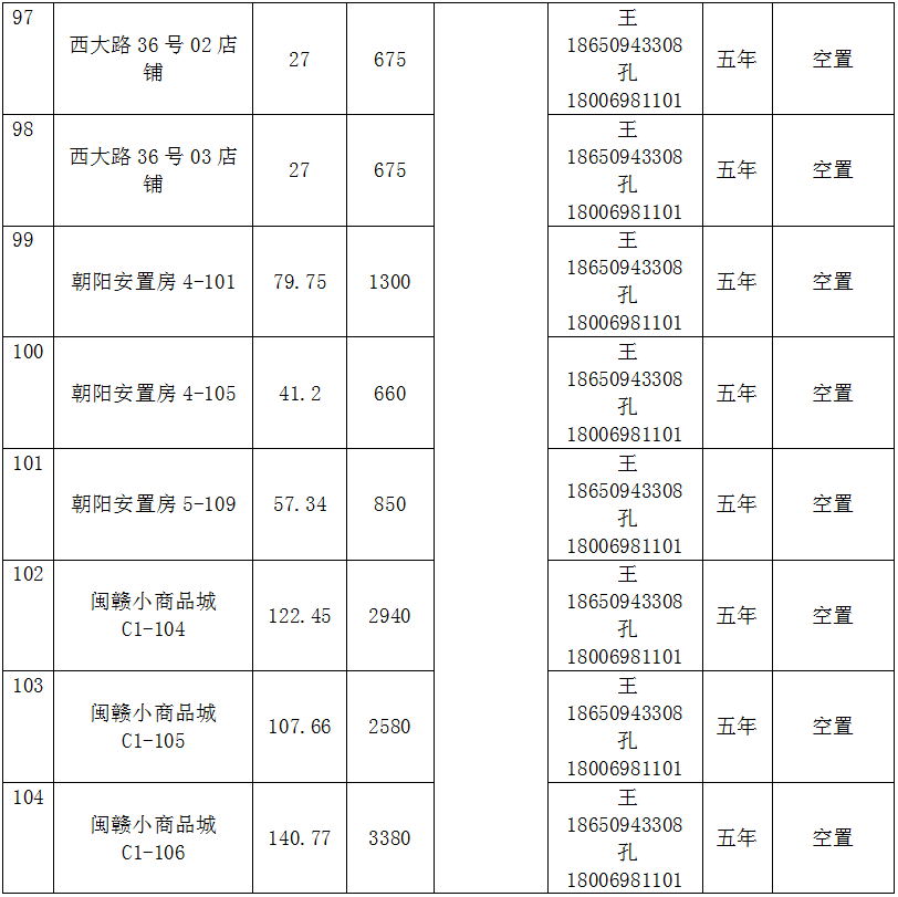 8.招租標(biāo)的基本情況如下:(共156個(gè)標(biāo)的)