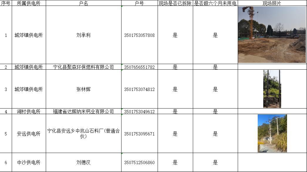 寧化縣超六個月連續(xù)不用電且現(xiàn)場用電設備已拆除的用戶銷戶公告
