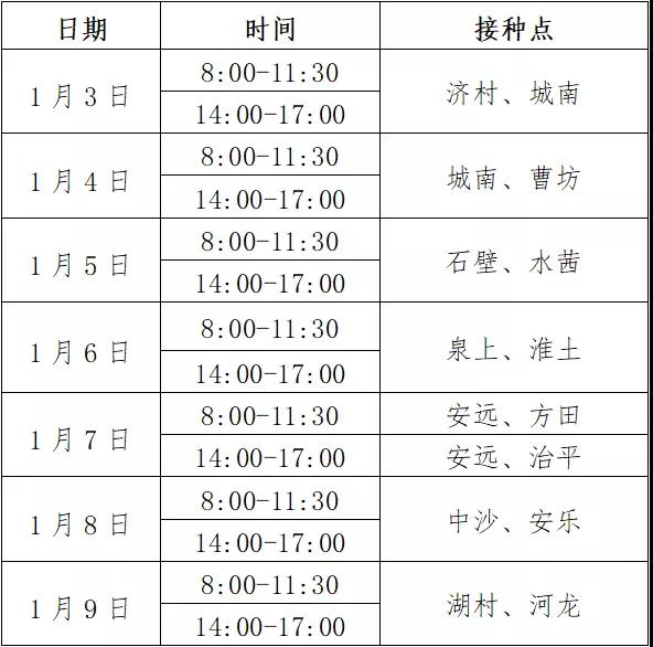 根據市新冠病毒疫苗接種工作總體安排,現將我縣1月3至1月9日新冠病毒疫苗接種安排如下: