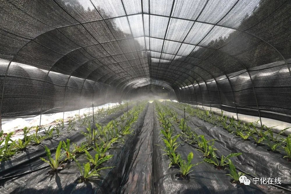 在寧化縣淮土鎮寒谷村山蘇種植基地,連片過百畝的蔬菜大棚里,滿眼綠意盎然。如今,寒谷村種植的首批山蘇畝產可達800-1000斤,畝年產值約2.6萬。