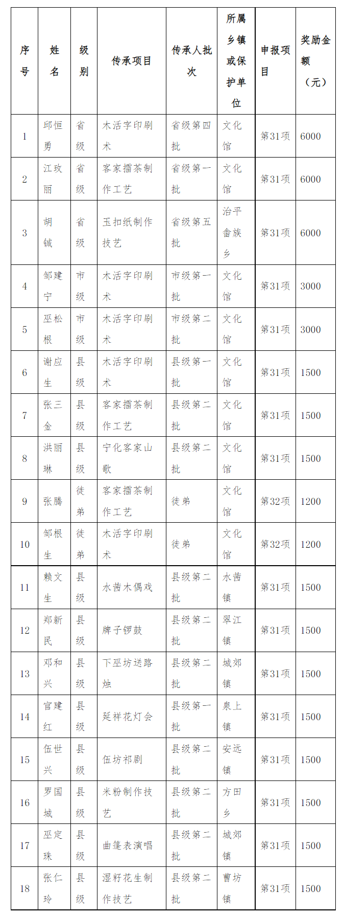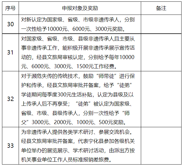 寧化縣“非遺”代表性傳承人人才獎勵申報對象及獎勵信息