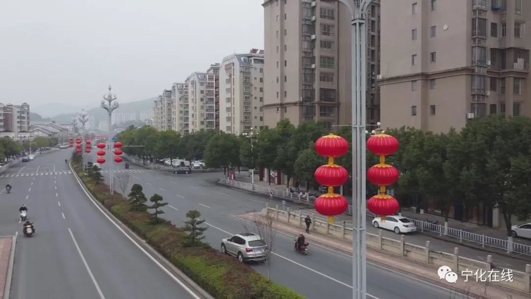 春節臨近,寧化縣的道路大街、休閑廣場被裝扮一新,大紅燈籠高高掛起,春節氛圍感拉滿,年味越來越濃。