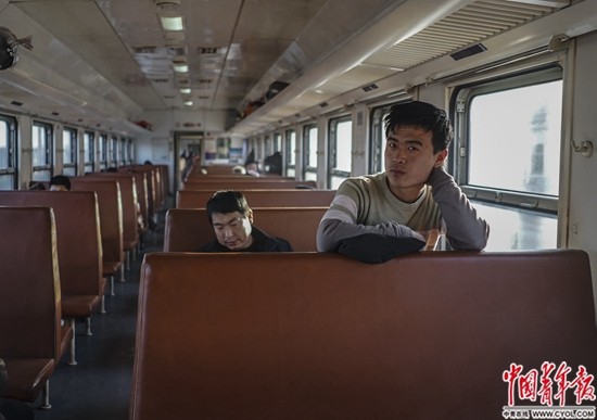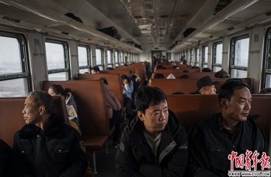 1月20日,從西安開往榆林的7006次客車硬座車廂。周日是許多人結束休假返回的高峰期。