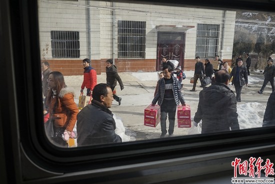 火車也連接著山村和外面的世界。鄉村里的學生踏上火車,前往延安、西安的學校。在鄉鎮工作的年輕人和朋友們坐上火車進城,再拎著滿滿的行李和購物袋坐火車回家。列車乘務員說,每到周末,甘泉北站到延安站之間就被學生擠滿。