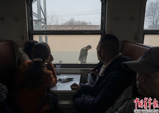 1月20日,從西安開往榆林的7006次客車??吭诼宕ㄕ?。附近鄉鎮的許多果農經常乘火車去“蘋果之鄉”洛川的果園干活。