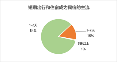 雖然八成以上用戶出行時間在1-2天,但是也不乏長期選擇民宿居住的人。北京一位先生2017年3月份入住北京朝陽區798附近的一家兩室一廳公寓,訂單顯示這位先生要住到2018年3月份。其租住價格與周邊小區公寓租住價格差不多,還可以享受到民宿的額外服務,可謂相當劃算。而最土豪住客則豪擲27萬人民幣入住了天津斯維登小白樓國貿中心服務公寓的五套公寓。