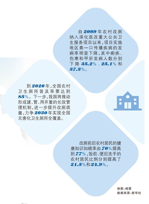 一場“廁所革命”的浪潮正在中國城鄉大地掀起。最新數據顯示,旅游系統“廁所革命”三年行動計劃提前超額完成,共新建改擴建旅游廁所6.8萬座。農村改廁加速推進,農村衛生廁所普及率從2012年的71.7%提高到2016年的80.4%,明顯改善了農村環境衛生面貌,降低了蚊蠅密度,有效預防和減少了疾病的發生。