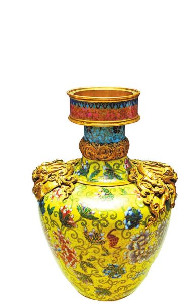 圖:掐絲琺瑯纏枝牡丹紋奔巴瓶(清晚期)