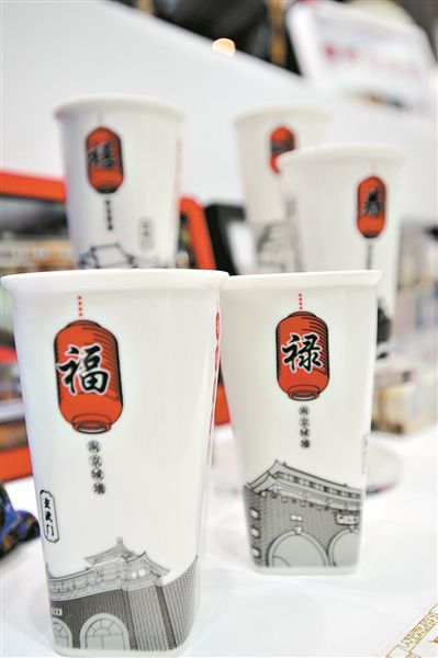 在馬克杯上展示“南京城墻”故事。圖/記者 軒慧