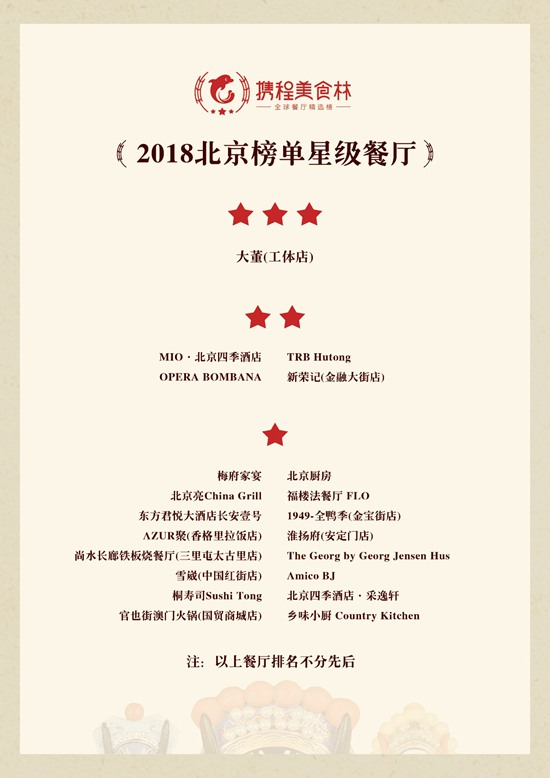 攜程美食林發布“品城巡味”北京榜單 大董成唯一三星