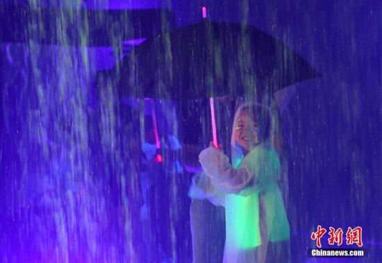 6月8日,一名孩童在桃花源記裝置藝術展上感受藝術氛圍。當日,由中視星業等機構主辦的《桃花源記:探尋五感世界的密境》藝術展在北京朗園開幕。此次展覽由成琳博士策展,是一場結合了眼、耳、鼻、舌、身,五感的多媒體裝置藝術展,展覽持續到6月19日。 中新社記者 楊可佳 攝