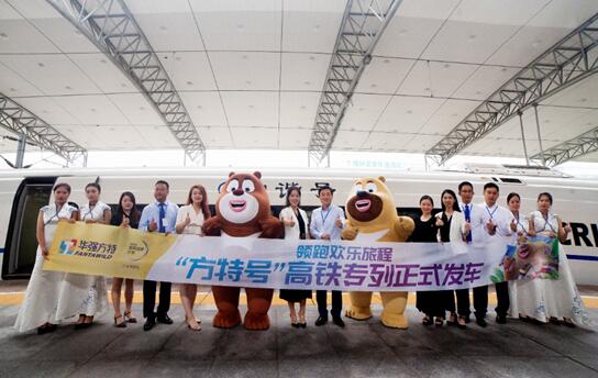 7月14日,華強方特冠名的“方特號”G1222次動車組首發(fā)儀式在沈陽北站舉行,這也是沈陽北高鐵站的品牌專列“首秀”。本列“方特號”動車組從沈陽北始發(fā),途徑天津、濟南、泰安、南京等城市后,最終抵達寧波站。“方特號”高鐵首發(fā)正值暑運高峰和世界杯期間,華強方特利用高鐵列車傳播歡樂理念,打造流動品牌名片,帶領(lǐng)旅客開啟了一段全新的歡樂旅程。