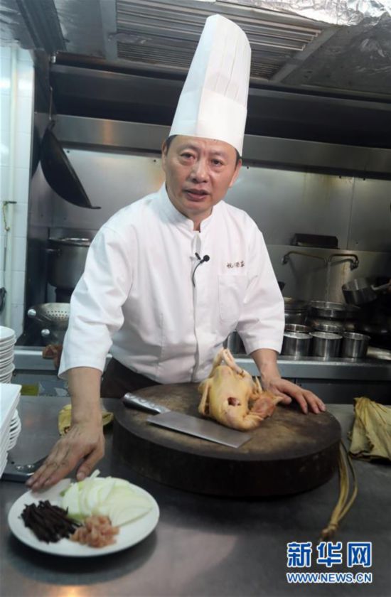 “我們的‘叫化雞’為金庸和饒宗頤所愛,他們每次必點(diǎn)。饒宗頤97歲來杭州酒家時(shí)能吃完一整只雞大腿。”吳瑞康說,杭州酒家的“叫化雞”是地道的杭州口味,需要用醬油和紹興酒腌制一小時(shí),主要食材包括:紹興酒壇泥、三層杭州荷葉,雞肚子里塞昆明大頭菜、洋蔥和豬肉絲,用荷葉和泥包好后再烤4小時(shí)以上,由于汁多味鮮肉化了入味,很受食家喜愛。