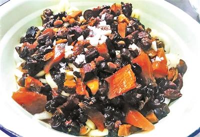 說起爛肉面,梁晨不僅會做,也了解它背后的歷史。“爛肉面其實就是一個窮人樂,過去生活條件不好,老百姓吃不上肉,能有個肉絲嘗味兒就算是吃著肉了。爛肉不是說燉的爛糊的肉,而是零碎下腳料,做這個鹵用的也是好的東西剩下的,像肉末、碎木耳、糠蘿卜、白菜幫子,有什么就往鍋里放什么。”爛肉面出現在大茶館、二葷鋪、飯攤兒,都是老百姓日常能接觸到的地方,吃爛肉面的顧客也大多是干力氣活的底層人民。“弄兩口大鍋,一鍋面一鍋鹵,吃碗爛肉面力工們就又拉車、卸車去了。有史可查的,清末民初那會兒,蘿卜白菜是三四個大子兒一斤,一碗爛肉面倆大子兒,可見這東西是多么廉價了。”