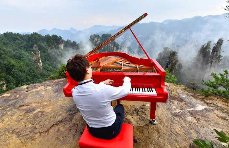2018年黃龍音樂季以全球獨創的峰林音樂會開幕。8月5日,在張家界天子山御筆臺巔峰之上,著名鋼琴演奏家元杰面對世界自然遺產武陵源的三千奇峰,彈奏蕩氣回腸的《我愛你,中國》,開啟了一次人類音樂史罕見的與大自然的音樂對話。與此同時,在15公里外的黃龍洞哈里路亞劇場綠色屋頂、沃野稻田的主演奏區,118架鋼琴手和交響樂團、合唱團的數百名演員,共同完成中國經典名曲的演出,激情澎湃的天籟之音在絕美的大自然中唱響。