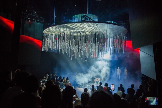 記者在現場看到,葉錦添攜團隊帶來的全觀演出“桃花源”無疑成為了當天最大的驚喜,立體黑幕將觀眾包裹在這個飄渺的小世界里,亦真亦幻,變化無窮,在短短的40分鐘內,觀眾隨著舞者的演繹,經歷了“無識”、“緣滅”、“神幽”這生命的輪回歷程。