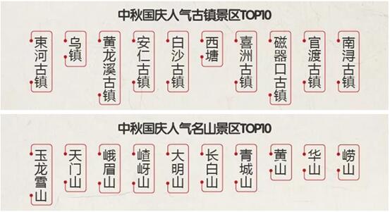 得益于此,古鎮、山水為主題的周邊游再度走俏,據途牛監測數據顯示,截止9月12日,雙節假期預訂人氣較高的古鎮景區TOP10為束河古鎮、烏鎮、黃龍溪古鎮、安仁古鎮、白沙古鎮、西塘、喜洲古鎮、磁器口古鎮、官渡古鎮、南潯古鎮。同時,玉龍雪山、天門山、峨眉山、嵖岈山、大明山、長白山、青城山、黃山、華山、嶗山、泰山等名山受到喜愛在秋季登高望遠用戶的青睞。