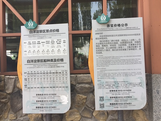 河北白洋淀景區價格公示牌