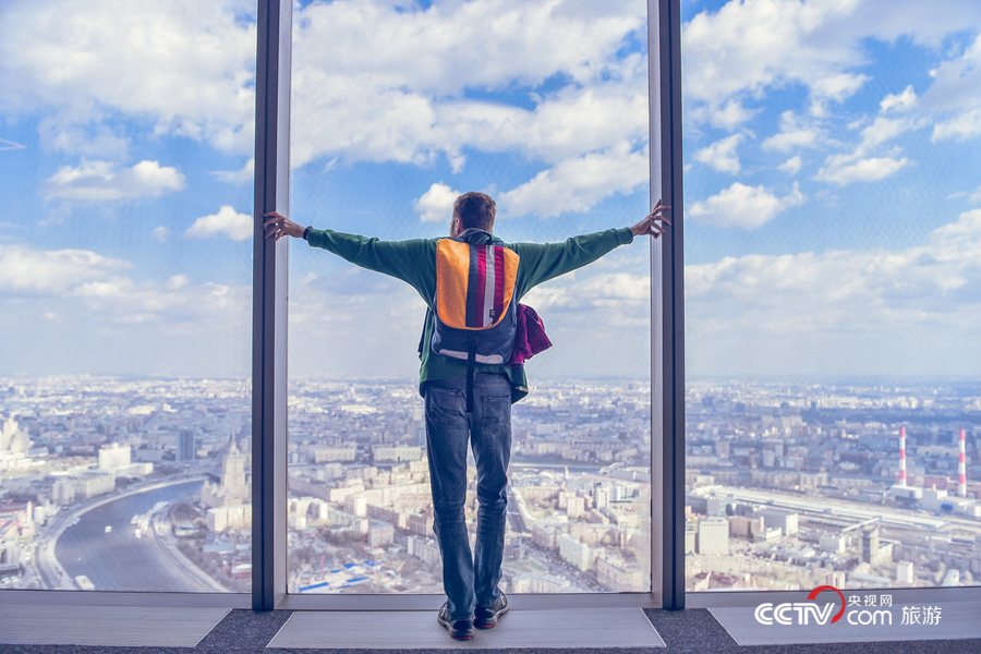 游客在“全景360”觀景臺眺望莫斯科城市風光