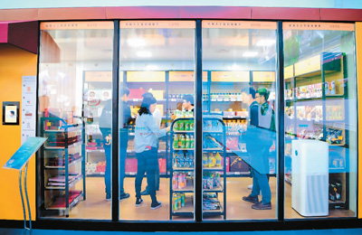 2018年4月22日,在福建省福州市舉行的首屆數(shù)字中國(guó)建設(shè)成果展覽會(huì)向公眾開放。圖為觀眾在體驗(yàn)“無人值守智慧零售超市”。 |