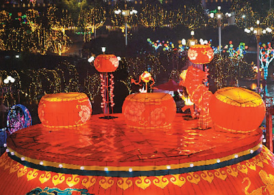 元宵是色彩鮮明的節(jié)日,游人、表演者的華麗衣裝與五光十色的燈飾交相輝映,構(gòu)成繽紛艷麗的視覺景觀。