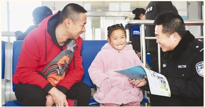 民警向小乘客講解鐵路安全知識。 |