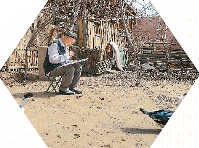 阿卜力克木·麥麥提敏在村頭寫生。 |