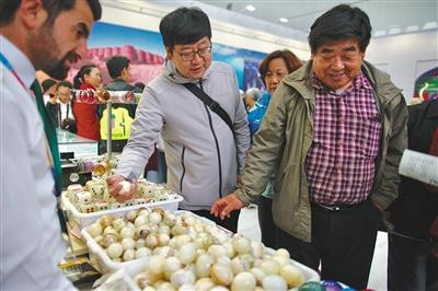 塔吉克斯坦展廳展示了當地的葡萄干、杏仁、蜂蜜,亞美尼亞展廳則推出最具代表性的“干邑”酒。工作人員告訴記者,這種酒曾被送到俄國的宮廷,幾乎所有前蘇聯電影都有它的鏡頭。