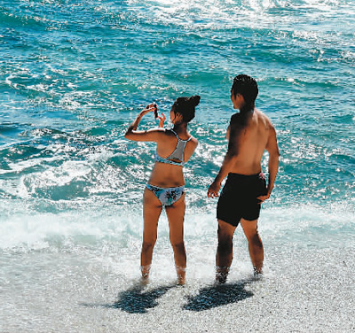 游客在綠島海灘自拍。 新華社記者 朱 祥攝 |