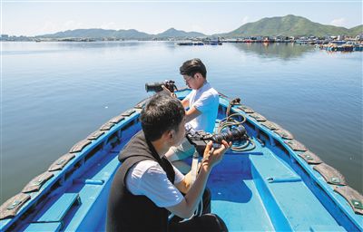 參加南灣猴島生態(tài)科學(xué)影像研學(xué)營的學(xué)生,在新村港拍攝疍家水上生活素材。本報記者 武威 攝