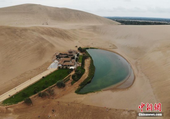 近兩年來,曾一度面臨“消亡危機”的甘肅敦煌月牙泉水域面積趨于穩定狀態,此前長時間日漸消瘦的月牙形狀,逐漸“豐滿”。素有“沙漠第一泉”之稱的月牙泉,古往今來與鳴沙山以“山泉共處,沙水共生”的奇妙景觀著稱于世。圖為近日拍攝的月牙泉。中新社記者 楊艷敏 攝