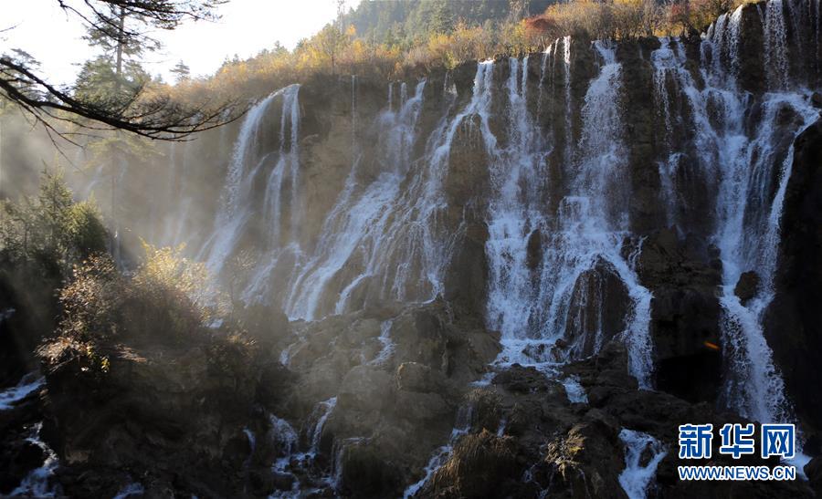 11月7日在九寨溝景區拍攝的景色。 當日,四川省阿壩藏族羌族自治州的九寨溝景區內艷陽高照,風景醉人。九寨溝景區經過地震重建后,于今年9月27日恢復開放85%的區域,“補妝”歸來,美麗依舊。 新華社記者 李夢馨 攝
