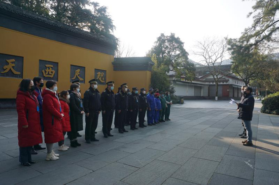 靈隱飛來峰景區(qū)為員工進行崗前培訓。西湖風景名勝區(qū)管委會供圖