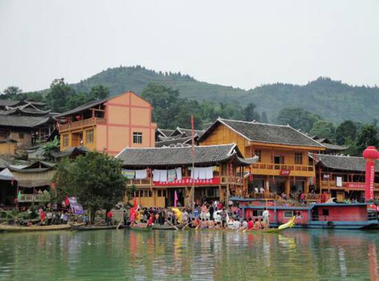 寨民們個個能歌善舞,民歌、山歌、打漁歌、抬巖歌、船工號子、哭嫁歌,還有悠揚悅耳的木葉,有若天籟、粗獷豪邁。每一首歌都記載著一個美麗的傳說,敘述了一個動人故事,演繹著“紅燈萬盞人千疊、一片纏綿擺手歌”的動人場景。此外,游冥觀花、跳神、敬牛神、打繞棺、做道場、還儺愿等巫儺文化,擺手節、祭祖節、過趕年、賽龍舟等民族節慶,令無數游客如癡如醉、流連忘返。