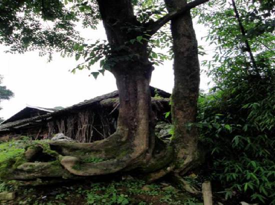 除了一座座風貌獨特古老建筑和濃郁的民族風情以外,山寨中還有一顆生長了500余年的“水紅樹王”,一直被村民奉為“仙樹”。還有一棵和睦樹,屹立于寨子中央,由一棵野漆樹和一棵枸檀樹組合而成,兩個不同生命,經歷幾百年的歷史,從最初的根相系到成為一個生命體。據說向它敬香禱告可保夫妻白頭偕老永不分離。這些都是河灣山寨的特色景點,前來旅游的人都會去看一看,沾一沾“仙氣”和“福氣”。