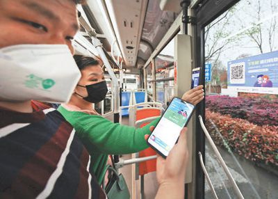 市民通過移動客戶端獲取健康碼“綠碼”方可乘車,上車須測量體溫,下車再掃碼。
