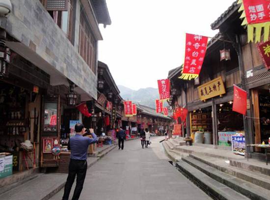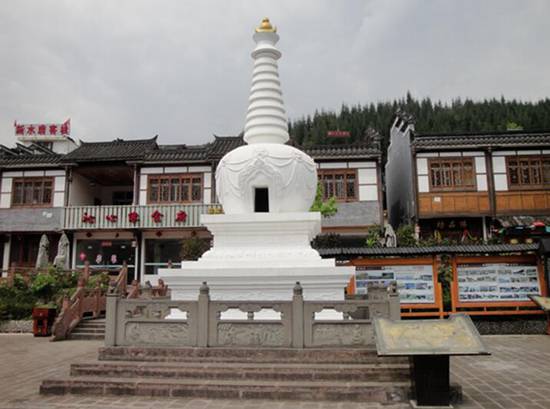 禪壽老街全長1300米,平面呈“U”形分列布局,兩側分布的春風閣、大夫第、萬年臺、字庫、白塔等建筑風格集中國傳統建議體系之大成,是典型的羌、藏、漢相結合的明清風格建筑,具有輪廓清晰、布局深蘊、多軸線明確等特點,體現了古人“天人合一”的建筑思想和設計理念。風格獨特、古色古香的禪壽老街還整齊分布著川西民居,不僅解決了災后227戶居民的住房問題,同時打造了“以家帶店”的宜居宜商模式,為發展旅游業,增加群眾收入創造了有利條件。