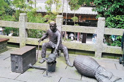 都正街不長(zhǎng),三百來(lái)米。從街口晃到街尾,感覺(jué)如進(jìn)了某個(gè)老長(zhǎng)沙人收藏細(xì)軟和珍寶的隱秘地,滿目都是好風(fēng)物:一卷麻石鋪地、綠葉懸壁的長(zhǎng)街,兩邊站立著畫(huà)了門神的老墻,掛了紅燈籠、高不過(guò)三四層樓的老鋪?zhàn)印⑴f公館,還有老師傅炸爆米花和拉黃包車的場(chǎng)景雕塑以及一家家漢服店、茶樓、老酒館……這老味道新氣息組合的一切,皆在寧?kù)o的日光和厚實(shí)的綠蔭里。